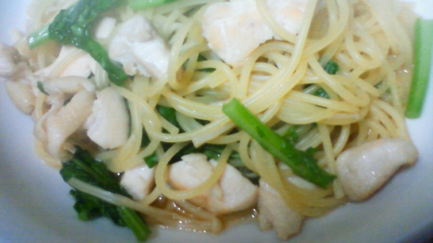 ~鶏肉と菜っぱの和風スパ~まぁまぁうまかったです。