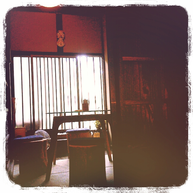 ほんと古い家屋をお店にした感じですよ。マキちゃんが好きな席はちょうどお婆ちゃん二人の先客が入っていて残念ながらそこには座れなかったのですが、写真だけ。