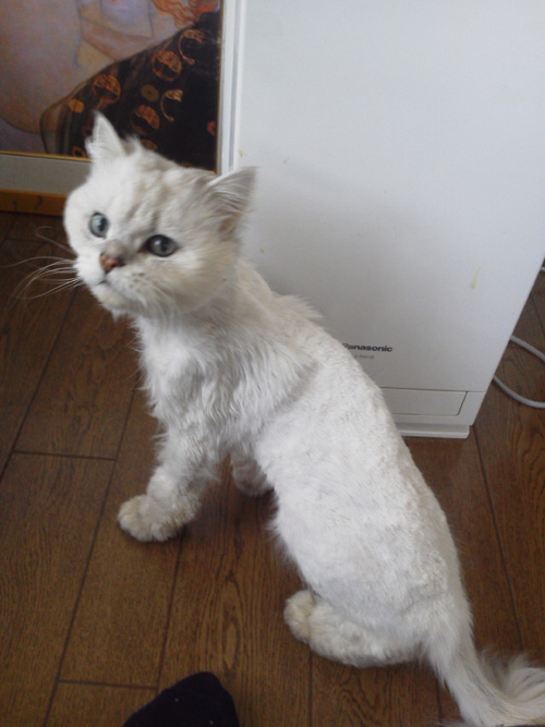 ねこが毛がなくなった様子を見て、笑ったり、細っ!とか毛がないことを言ってはいけないと・・・。